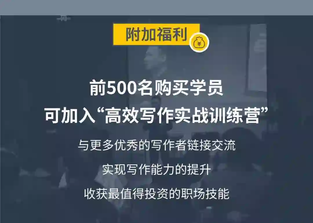如果你身边的朋友、同事、员工、上司在写作上有迷思和痛苦,别忘了把今天的文章分享给ta,邀请ta一起参加课程,我们一起成长,一起迭代。