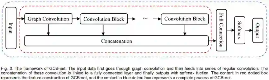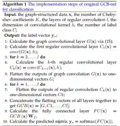 如图 3 所示,该网络首先利用切比雪夫图卷积来处理不规则网格数据。然后利用正则卷积提取更高层次的特征。在所有的卷积之后,不同层的输出被平铺成一维向量并连接在一起。然后,对网络进行全连通层预测,并利用 softmax 函数进行预测。Original GCB-net 伪代码如图 4 所示。