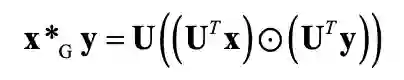 U 是图的拉普拉斯矩阵 L 的特征矩阵,⊙ 表示 hadamard product,对于两个向量,就是进行内积运算;对于维度相同的两个矩阵,就是对应元素的乘积运算。