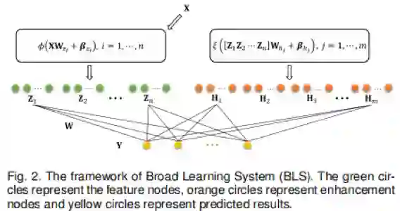 BLS 提供了一种可选的学习结构,通过随机方法将特性扩展到广阔的空间。网络主要由特征节点和增强节点构成。