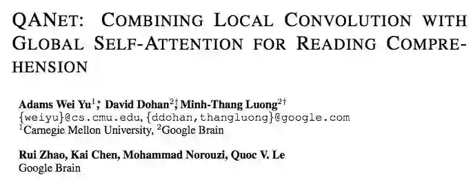论文:QANET: COMBINING LOCAL CONVOLUTION WITH GLOBAL SELF-ATTENTION FOR READING COMPREHENSION