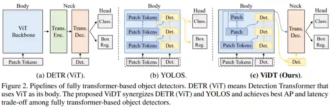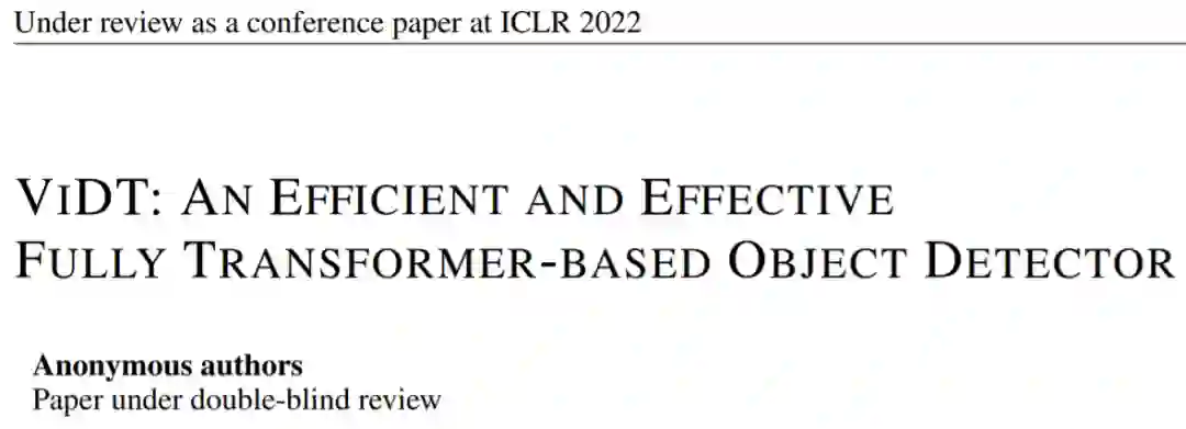 Transformer 在 NLP 任务中取得不错的发展,许多研究将其引入到计算机视觉任务中。毫不夸张的说,Transformer 正在改变计算机视觉的格局,尤其是在识别任务方面。例如 Detection transformer 是第一个用于目标检测的、端到端的学习系统,而 vision transformer 是第一个完全基于 transformer 的图像分类架构。在本文中,一篇被 ICLR 2022 接收的匿名论文集成了视觉和检测 Transformer (Vision and Detection Transformer,ViDT) 来构建有效且高效的目标检测器。