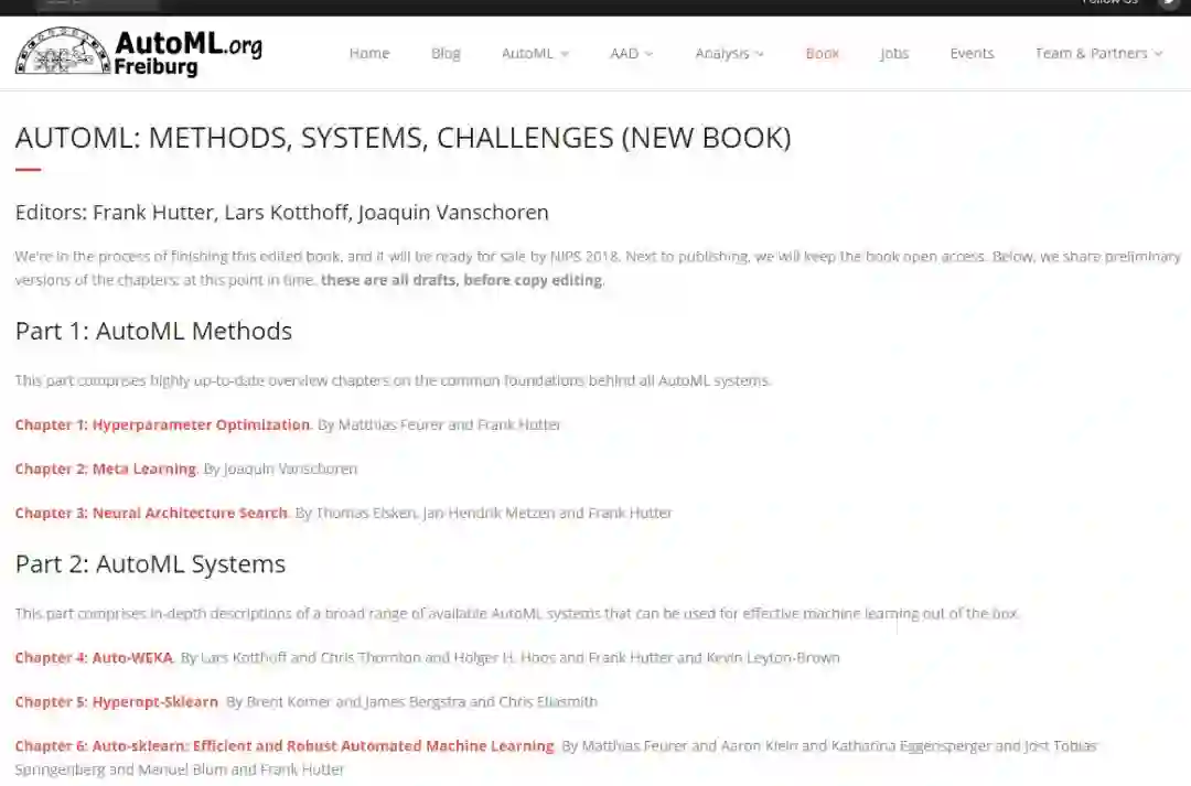 《AUTOML》作者当前正在完成这本新书的编辑工作,它将由NIPS 2018出版发行。