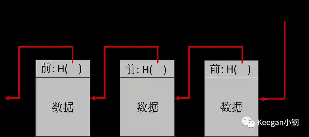 那么,从微观上理解区块链,就要从理解区块链最底层的数据结构开始。区块链(Blockchain),简单来说就是按时间顺序将数据区块通过哈希指针的方式连接起来的一个链表。哈希指针是区块链里最常用的数据结构,其实就是一串数据的哈希值,我们知道,一串数据的哈希值就是这串数据的指纹/摘要,因此就可以用这个哈希值来指向这串数据,如下图: