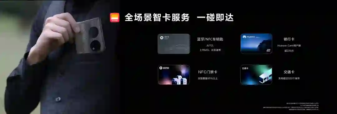 事实上,除了数字车钥匙,华为钱包也在其它方面潜移默化地将我们的生活数字化,除了银行卡之外,全场景智卡是华为钱包数字生活领域的核心产品,只需碰一碰,手机自动帮你识别场景——全场景智卡可以是你的车钥匙、交通卡、门禁卡、校园卡、健身卡、电子身份证、箱包锁。