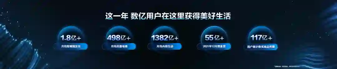 月均超过1.8亿个短视频发布,月均超过498亿直播场观人次,月均超过1382亿条互动内容,2021年12月搜索量超过55亿,全年用户累计购买商品超过117亿件……这是抖音电商官方在2022年1月6日公布的最新数据。
