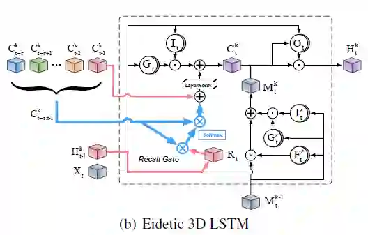 表示召回门(代替遗忘门),和 ST-LSTM 相比,主要有以下改进: