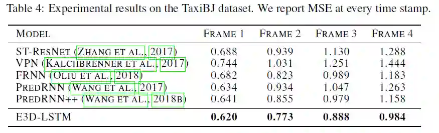 本文对 ST-LSTM 进行了改进,将流行的 3D 卷积操作作为其基本张量操作,同时添加了自注意力模块,进一步强化了网络对长距离依赖信息的刻画能力,不仅能用于预测任务,还能通过辅助学习的方法拓展到其他任务上,是非常具有启发性的工作。