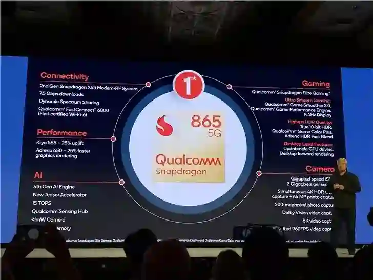 搭载骁龙 865 的终端预计将于 2020 年第一季度面市,摩托罗拉,OPPO 和小米都已确认将在新的移动平台上推出手机。