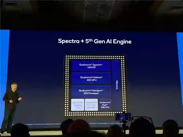 全新第五代 Qualcomm AI Engine 和全新 AI 软件工具包支持的出色性能,将助力打造最新水平的拍摄、音频和游戏体验。第五代 AI Engine 可实现高达每秒 15 万亿次运算(15 TOPS),AI 性能是前代平台的 2 倍。全新升级的 Qualcomm Hexagon 张量加速器是 Qualcomm AI Engine 的核心,其 TOPS 性能是前代张量加速器的 4 倍,同时运行能效提升 35%。