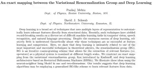 物理学家David Schwab和Pankaj Mehta在2014年的论文,证明在特定情况下深度学习等同于物理中的重整化技术,这让Tishby注意到信息瓶颈理论与深度学习之间的关联