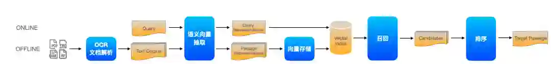 该检索系统基于端到端问答技术RocketQA,该模型结合知识增强的预训练模型ERNIE 3.0和百万量级的人工标注数据集 DuReader训练得到,效果优异。该模型可以在Pipelines一键调用,大大降低问答系统模型建模成本。