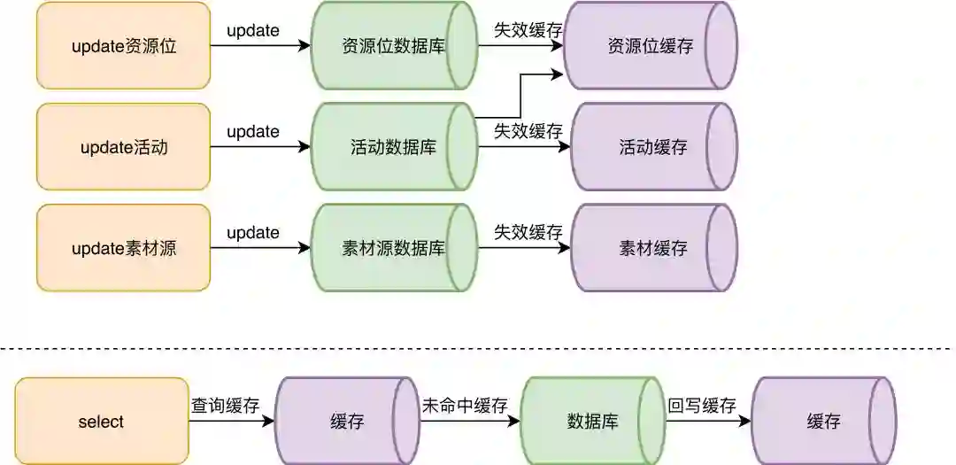 所有的查询都是先进行缓存查询,如果未命中再查询数据库,把查询到的数据回写到缓存中。对于所有的更新操作,都是先更新数据库,然后再失效缓存,在更新活动时,需要在失效活动缓存的同时,也要失效该活动对应资源位下活动列表的缓存。