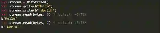 压缩编码(例如霍夫曼编码)并不总是以全部字节数来表示数据。由于位流支持位而不仅仅是字节,所以代码可以使用相同的API来实现。比如一个自然数的序列的一元编码只需要几行。