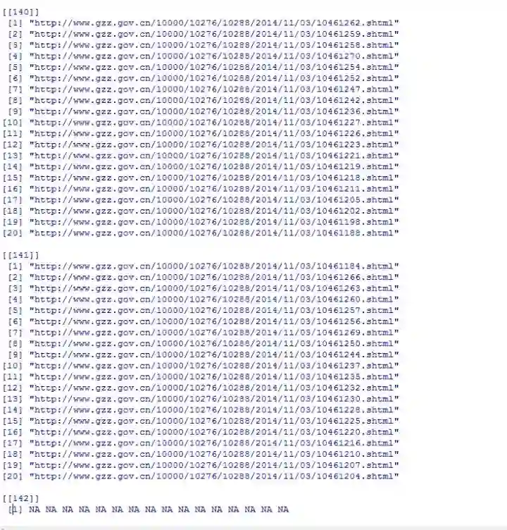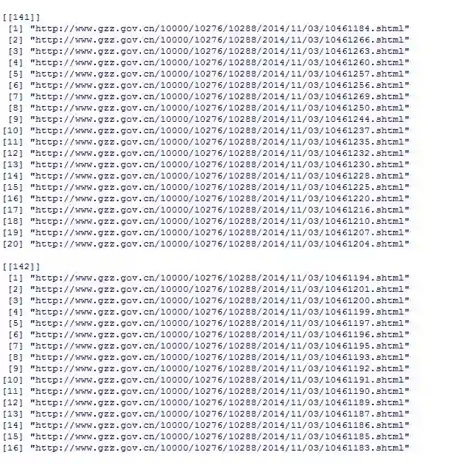 http://www.gzz.gov.cn/10000/10276/10288/index从1到141.shtml的网页,在每一页上得到他们的links也就是类似与上面的例子