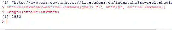 上面的grepl("\\.shtml$", entirelinksnew)代码就是找出所有结尾为shtml的url。而别的就可以省略了。