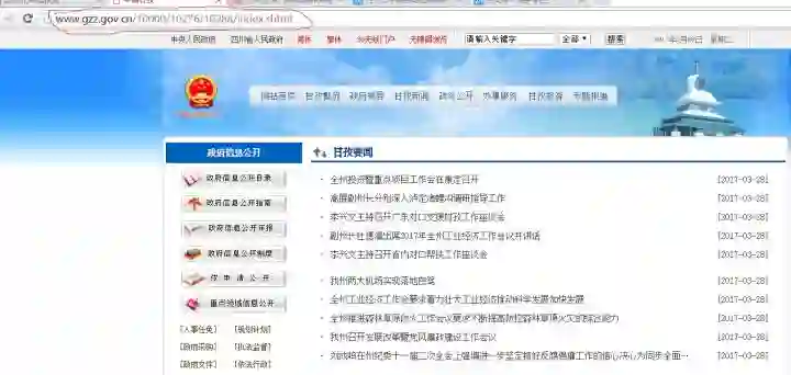 然后分析开始,首先观察我们的基本网站网址url为gzz.gov.cn/,然后打开新闻链接