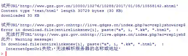 我们现在已经得到了所有新闻的链接url,接下来我们就要对每一条链接用readLines函数进行处理,在R中显示源代码。