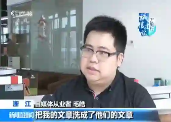 自媒体从业者 毛皓:之前我花了三到四天的时间,写出了一篇深度稿件,很快就在朋友圈,得到了大量转发,但是还没有等到我开心多久,我突然发现冒出了二三十个帐号,把我的文章写成了他们的文章,甚至还有一些人申请了原创标志,而且他们的账号非常快,(阅读量)也达到了十万以上。最终我的这篇文章,微信端获得了120万的阅读。