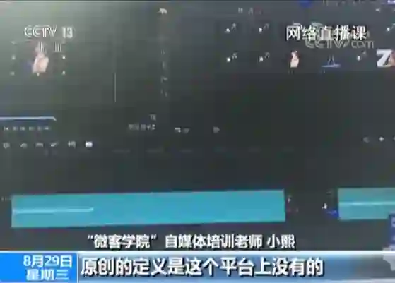 “微客学院”自媒体培训老师 小熙:原创的定义是什么?这个平台上没有的以及互联网上没有的,直播的内容是每一天都在不断更新,不断进行创作,如果你是在网上找(已有)视频搬运过来,总是能在网上找到痕迹,但是直播内容你是很难在网上找到的。找直播内容的时候,不要选择十几万粉丝的大号主播,因为可能被他粉丝喷,甚至还可能受到版权的投诉。要找小主播,没人关注,他们纯粹就是玩,不会重视这些事。