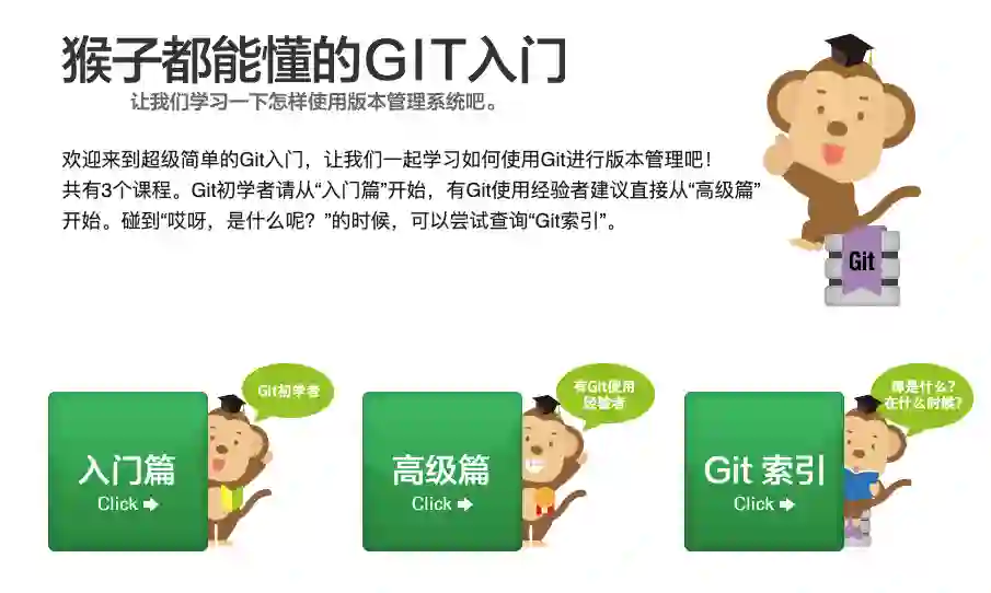 除了上面还有其他的就不一一列举了,记得刚开始工作的时候使用的是 TortoiseSVN (Subversion 版本控制系统的一个免费开源客户端),后来慢慢接触了Git到现在就一直使用Git。现在接触的公司也都在使用Git,所以掌握Git是我们的一项必备技能。下面我就分享一些Git的教程: