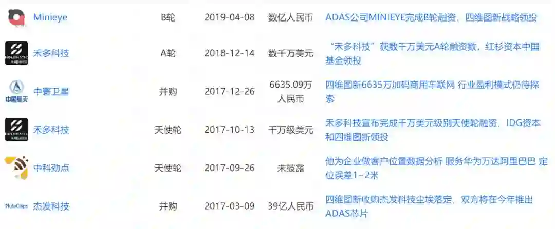 而刚刚完成 B 轮融资的 Minieye,则是四维图新首次战略领投的自动驾驶感知解决方案供应商。