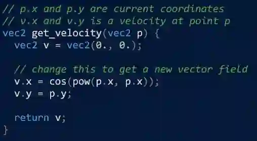 随着计算机的不断发展,现在的我们想要观察场的行为已经容易得多,早已不像当年还要撒铁粉来观察磁场了。小编之前在网上发现一个开源项目 Field Play,可以根据你输出的表达式来实时生成流速场。顾名思义,流速场也就是空间中每一点对应该点位置的流速。图片经过作者大大的美化处理,看起来更加炫酷。