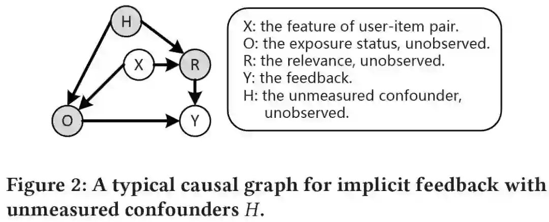 方法。众所周知,双稳健方法及其变体在显性反馈的无偏学习中取得了最先进的性能,而且许多新的算法和模型结构被设计用来提高DR方法的性能。因此,开发隐性反馈的DR方法是必要的;(2)没有一个方法可以解决未测量的混杂因素。由于各种原因,如技术困难或隐私限制,未测量的混杂因素是推荐系统中不可避免的问题。我们的理论分析表明,当未测量的混杂因素存在时,基于倾向得分的去偏方法是有偏差的,因此在推荐系统中开发一种对抗未测量的混杂因素的方法至关重要。