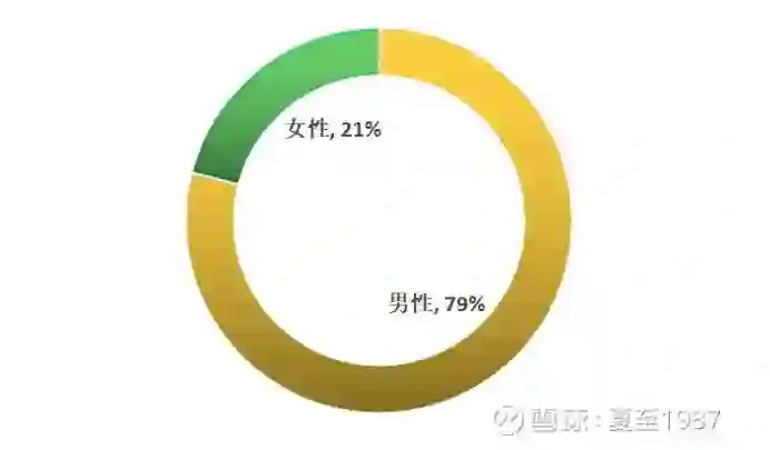 在性别维度,男女比例大概是4:1,这个也比较符合我们的直观感受: