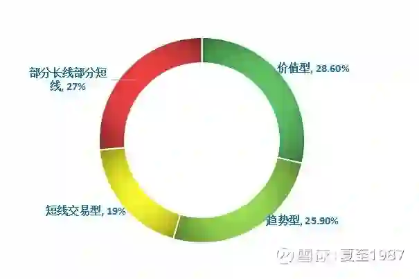 价值投资者占比有28%这么多吗?我表示怀疑。实践中,我接触到的价值投资者连10%都不到。可能是因为大家内心希望自己是价值型,结果实际操作的时候又去当“股神”,跑偏了,炒题材和热门股去了,不然也不会有“一赚二平七亏”的说法啊,那应该至少有“三赚”才对。