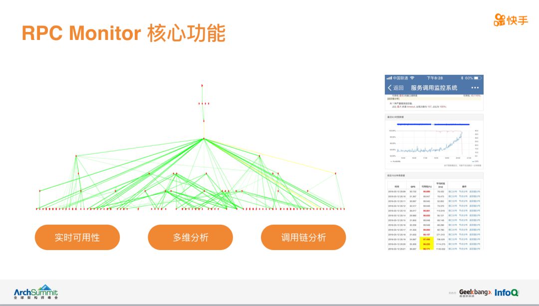 跨数据中心的路由管理功能在快手内部每个月大概有一百多次的使用。RPC Monitor 每天会发出几百个报警信息,发现并定位了后端工程方面几乎 100% 的故障。