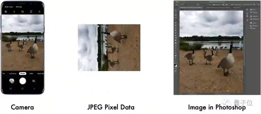 然而眼见并非为实,实际图像的像素数据不会旋转。这是由于图像传感器是对连续的像素信息流进行逐行读取,因此你无论纵向和横向握持相机,图像都是按照一个方向进行存储。