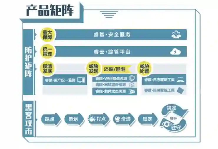 中睿天下基于攻击者视角构建的安全防护产品矩阵如下: