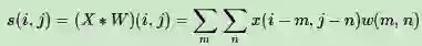 在CNN中,虽然我们也是说卷积,但是我们的卷积公式和严格意义数学中的定义稍有不同,比如对于二维的卷积,定义为: