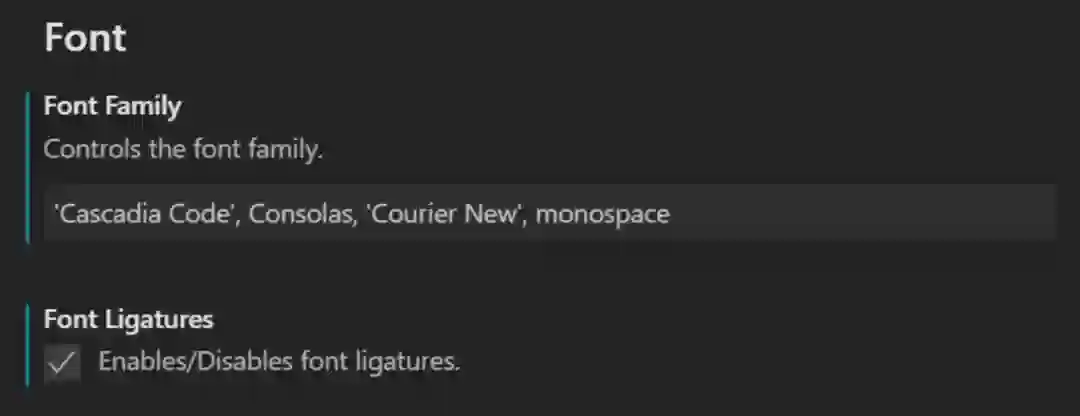 需要注意的是,如果使用的是 VS Code,则必须在设置中启用连字功能才能生效。