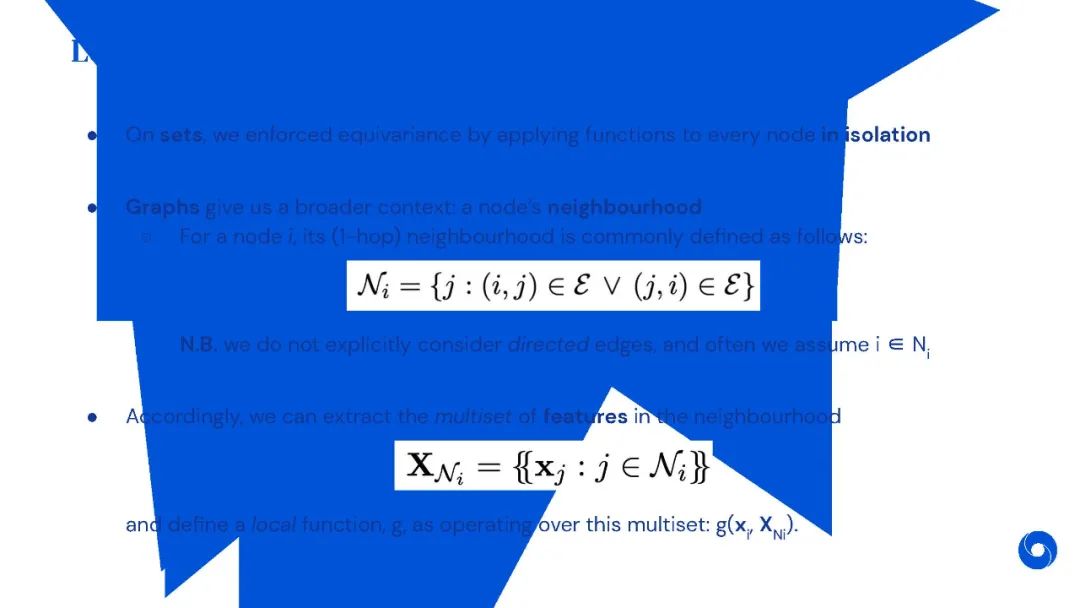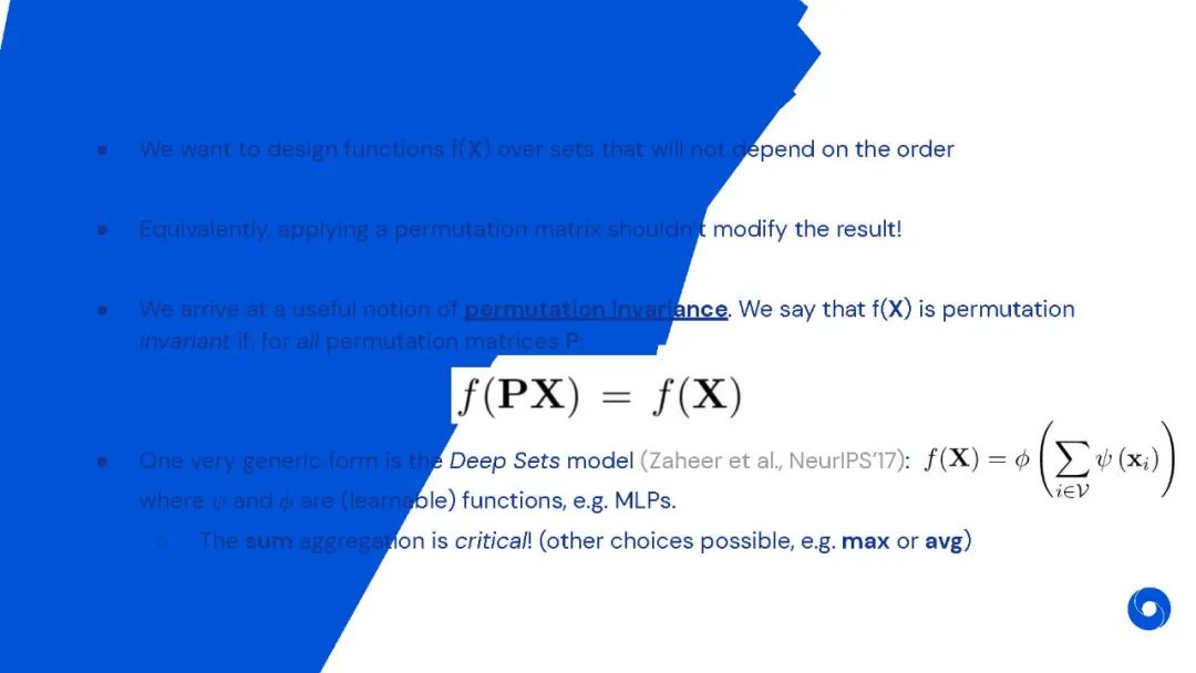 在这次演讲中,我将尝试对GNNs提供一个“鸟瞰”的视角。在快速学习使用图表示学习的动机之后,我将从排列不变性和等变性的第一原则推导出GNN。通过这一视角,我将描述来自不同领域 (图嵌入、图信号处理、概率图模型和图同构测试)的研究人员是如何独立地得出本质上相同的GNN概念的。