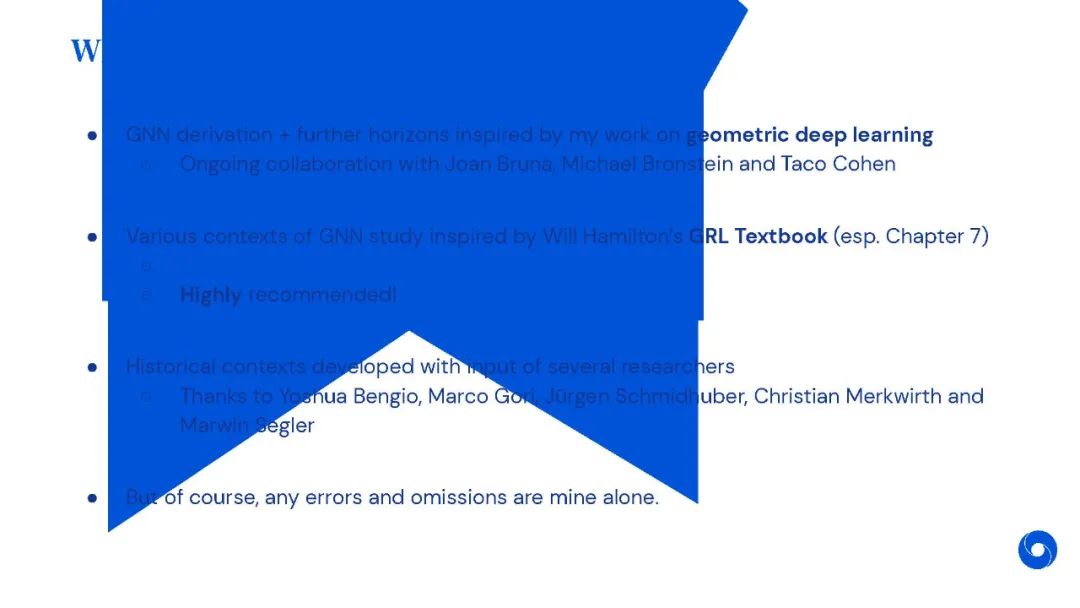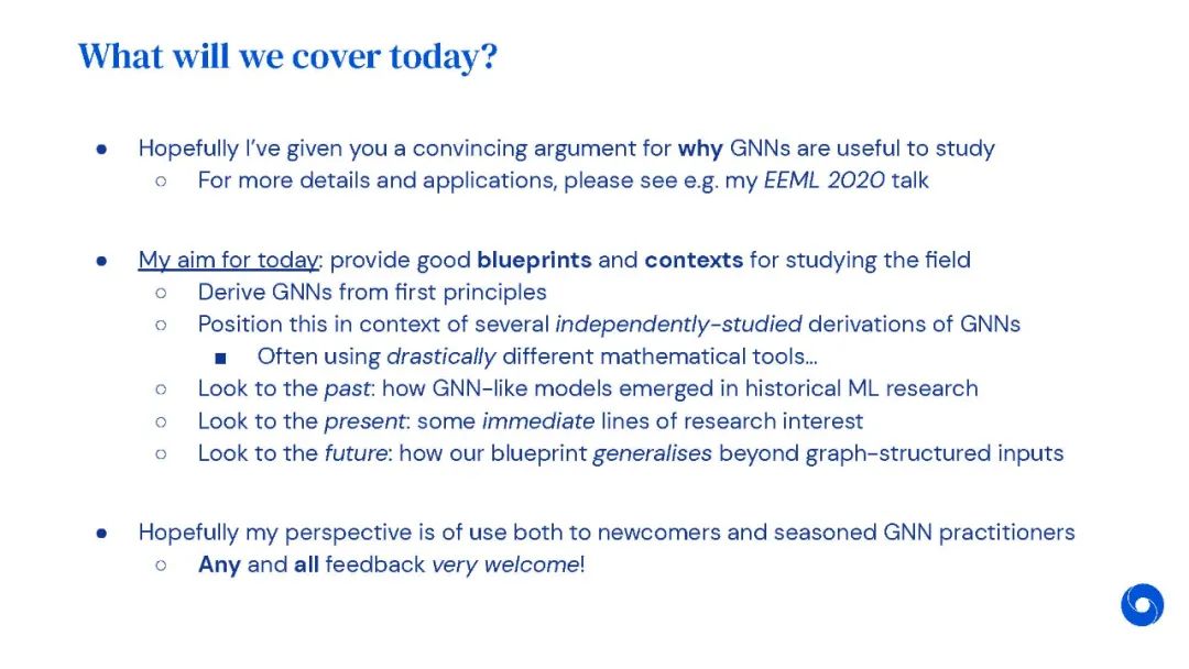 这次演讲的目标听众是一般的计算机科学听众,不过一些关于机器学习的神经网络的基本知识也会很有用。我也希望经验丰富的GNN从业人员可以从我将呈现的分类中受益。