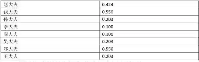 后面Freund和Schapire会解释这个规则的来由。按照这个计算规则,8个大夫的话语权为: