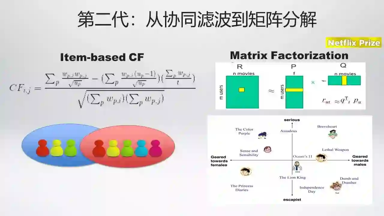 奈飞(Netflix)大家都知道,在十年以前举办了一次推荐算法的比赛,奖金是一百万美元,比赛是为了解决它当时对于用户评分的一个预测问题,所以推荐算法在视频网站的应用历史应该是比较悠久的。