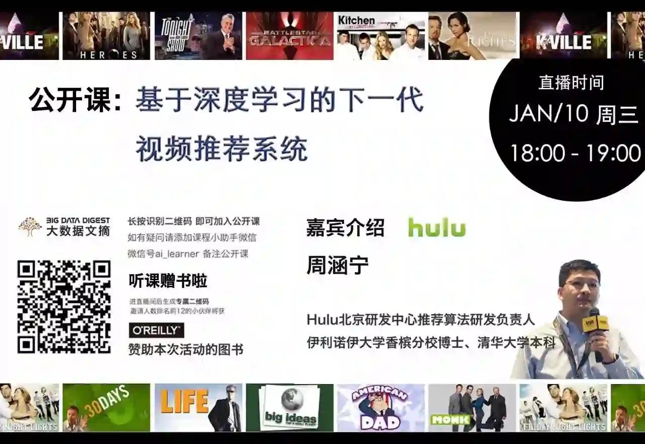 本周三,大数据文摘邀请到Hulu(美国第二大视频网站)推荐算法研发负责人周涵宁,来分享了基于深度学习的下一代视频推荐系统(戳蓝字了解)。周老师分享了大量干货,大数据文摘特整理公开课实录如下(在不改变原意的前提下有删改)。