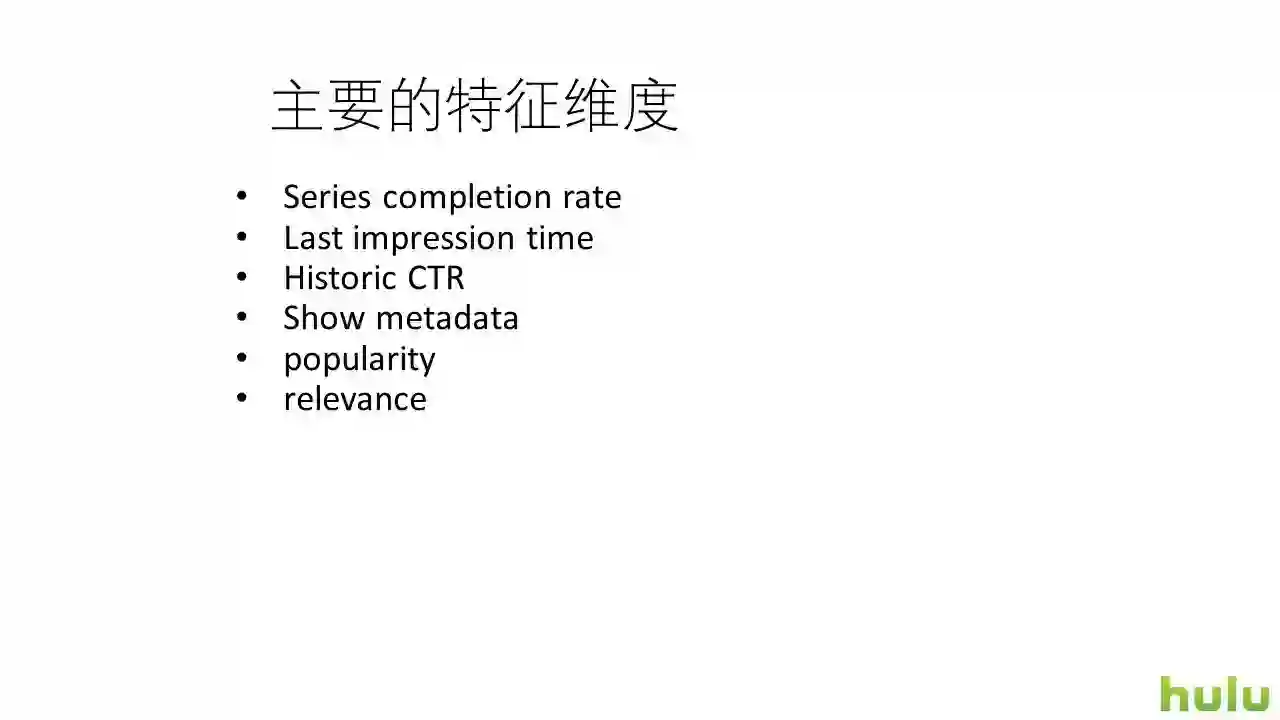 大家好,我是周涵宁,来自于Hulu。Hulu是美国第二大的视频网站,今天我要分享是视频推荐系统。