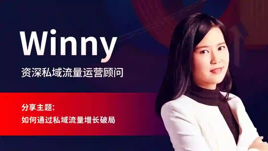 前天猫美妆、个护、家庭环境清洁三大品类营销负责人 Winny 老师,现在担任了资生堂等 80 余家头部、新锐品牌营销与私域运营顾问。本场大会,她来跟我们聊聊私域流量实战秘籍!