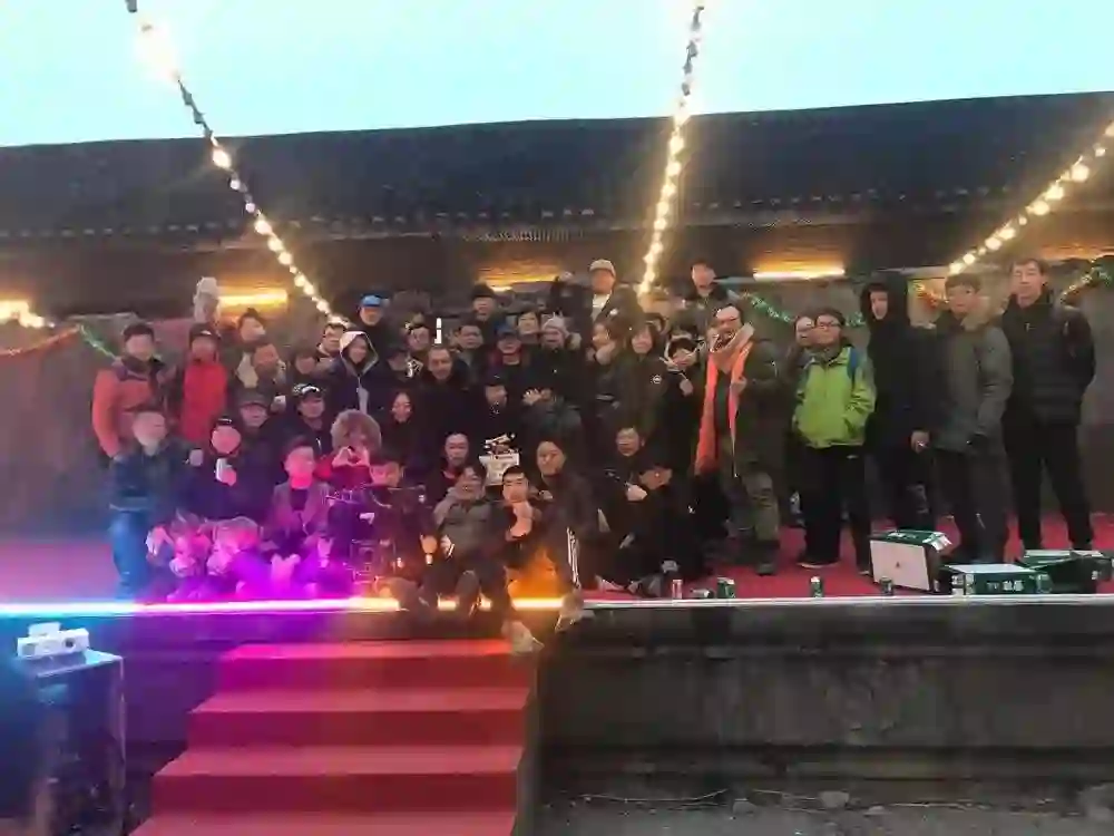 这是《地球最后的夜晚》最后一条长镜头的杀青合影,摄于2018年2月9日凌晨7点