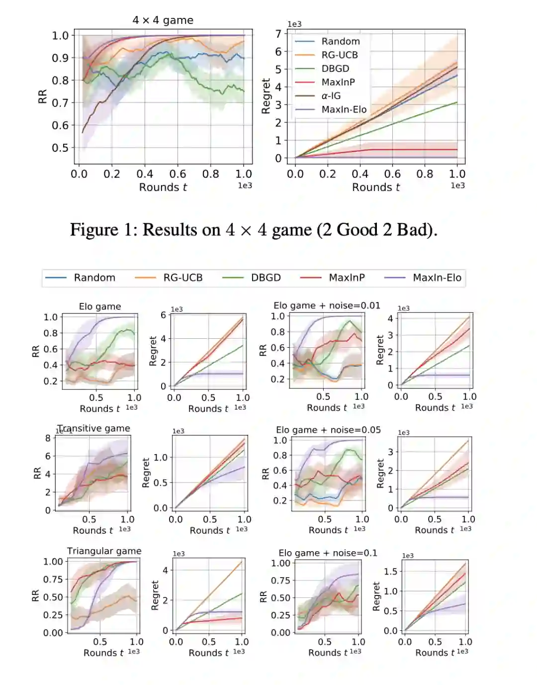 在本文中,为了尽量减少比较次数并提高 Elo 评估的样本效率(针对顶级玩家),我们提出了一种高效的在线匹配调度算法。具体来说,我们通过对战老虎机(dueling bandits)框架识别和匹配顶级玩家,并根据 Elo 基于梯度的更新方式来设计老虎机算法。我们表明,与传统的需要 O(t) 时间的最大似然估计相比,我们能够将每步内存和时间复杂度降低到常数。我们的算法有一个遗憾(regret)保证 O ̃(√T) (O ̃忽略对数因子),与比赛轮数是次线性相关。并且算法已经被扩展到处理非传递性游戏的多维 Elo 评级。实验结果证明我们的方法在各种游戏任务上实现了较优的收敛速度和时间效率。
