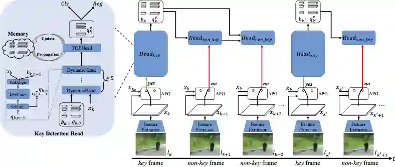 为此,本文研究了对象级特征传播,并提出了一种用于高性能视频物体检测的对象查询传播(QueryProp)框架。提出的QueryProp包含两种传播策略:1)对象查询从稀疏关键帧传播至密集非关键帧,以减少对非关键帧的冗余计算;2)对象查询从之前的关键帧传播至当前关键帧,以建模时间上下文来提升特征表示。