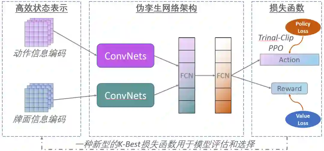 在这项工作中,我们提出了一个高性能和轻量级的德州扑克人工智能AlphaHoldem。AlphaHolddem是一种端到端的自学习强化学习框架,采用了一种伪孪生网络结构,通过将学习到的模型与不同的历史版本进行对打,直接从输入状态信息学习到输出的动作。
