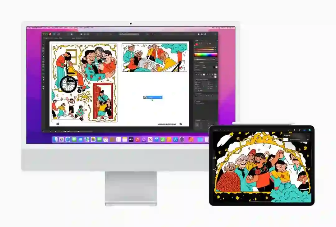 通用控制功能让用户只使用一套鼠标和键盘就可在 Mac 和 iPad 中无缝切换。用户只需将两台设备靠近,就能立刻将指针从一台设备移到另一台,且无需进行设置。用户可以使用 Mac 键盘在任意一台设备上输入文本,或者在两台设备间来回拖放内容,还可以用 Apple Pencil 在 iPad 上画好图后,将图片直接拖放至 Mac 的 app 内,同时利用两台设备的强大功能。借助隔空播放到 Mac 功能,用户可以轻松在 Mac 上播放、展示和共享来自 iPhone 或 iPad 的内容。使用隔空播放,无论是最新电影、游戏、照片还是演示文稿,都可共享至 Mac 令人惊艳的视网膜显示屏上;用户也可以在房间内的任意地方通过 Mac 的高保真音响系统播放音乐。