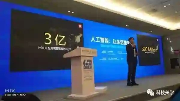 今日,小米董事长兼CEO雷军在乌镇第四届互联网上发表主题演讲《人工智能:让生活更美》。从@小米粉丝后援会 曝光的现场图片来看,雷军演讲的PPT显示,MIUI全球联网激活用户已经超过3亿。
