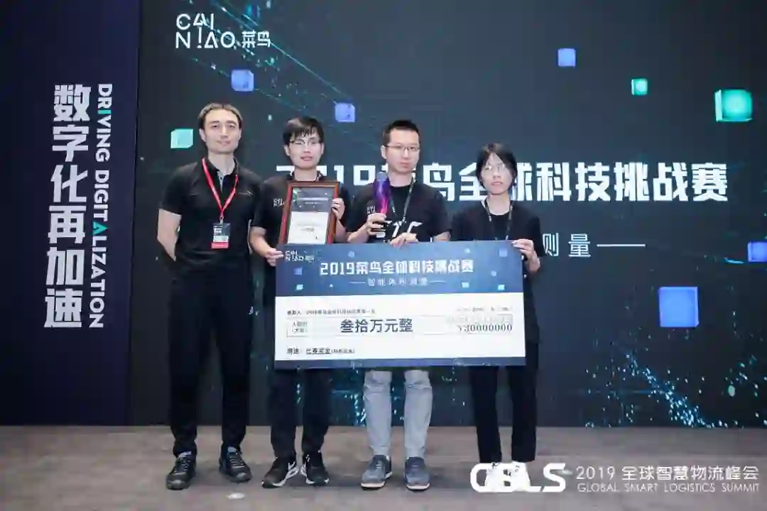 近日,2019 菜鸟全球科技挑战赛在杭州落幕。在菜鸟柔性自动化实验室资深总监寒帅、菜鸟人工智能部研究员徐盈辉、旷视南京研究院院长魏秀参、阿里集团高德视觉技术攻坚小组研究员任小枫、菜鸟北京技术中心资深技术专家陈罡等评委的审议下,比赛最终决出了前三名。这些队伍获得了共计 60 万元的高额奖金。