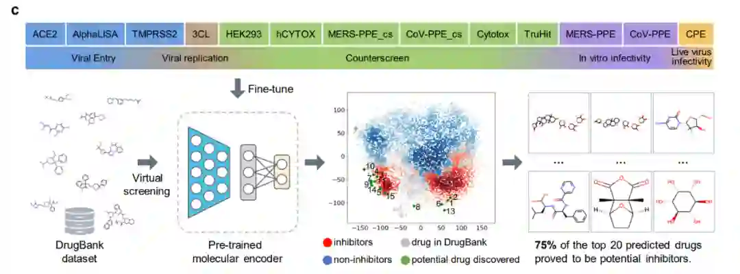 自新冠疫情爆发以来,我们迫切需要为新冠疫情制定有效的抗病毒治疗策略。因此,作者在该方面对 ImageMol 做了相应的评估。
